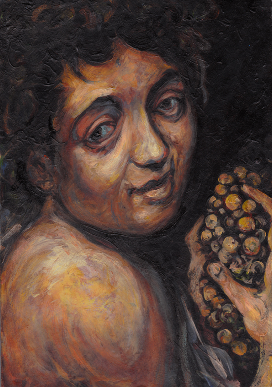Öl auf Leinwand, 80 x 60, 2023, Sven Schalenberg, frei nach Caravaggio „Der kranke Bacchus“