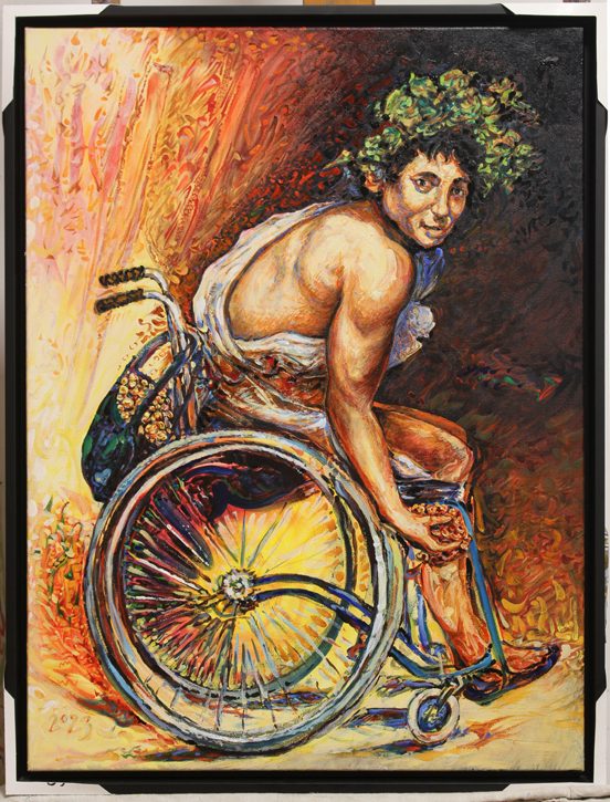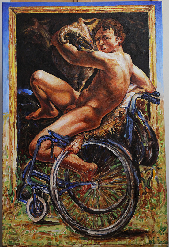 Den Protagonisten seiner Bilder wird hier nun ein Rollstuhl untergeschoben.