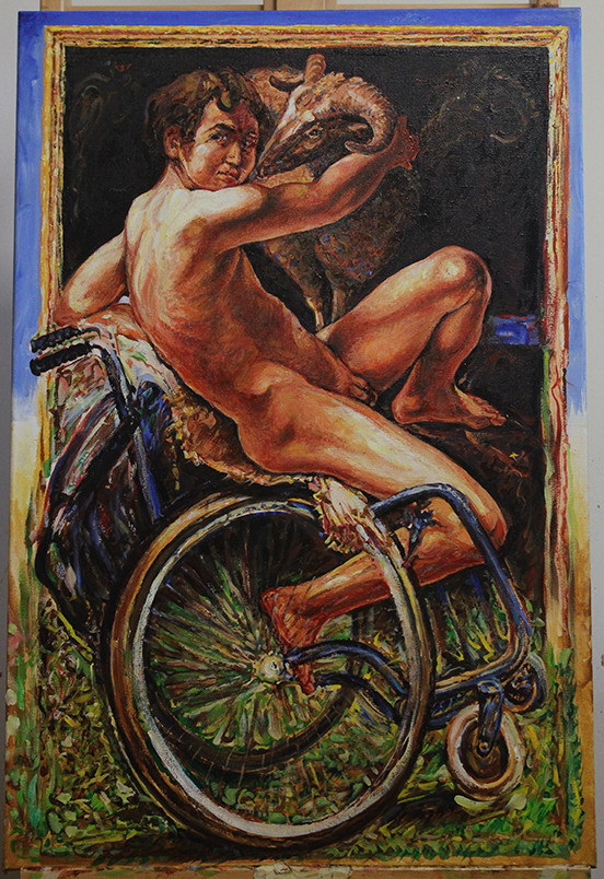 Sven Schalenberg, frei nach Caravaggio „Johannes mit dem Widder“ , links gedreht